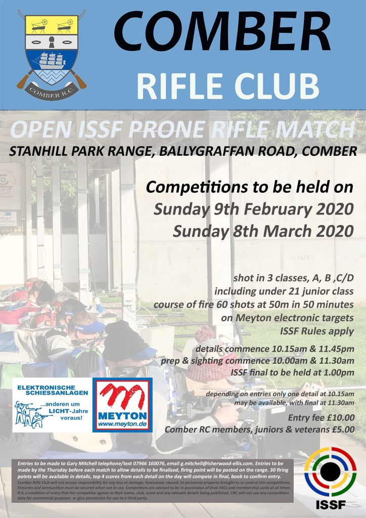 Competitions will be held on Sunday 9th February (cancelled due to Storm Ciara) and Sunday 8th March at the Stanhill Park Range, Ballygraffan Road, Comber